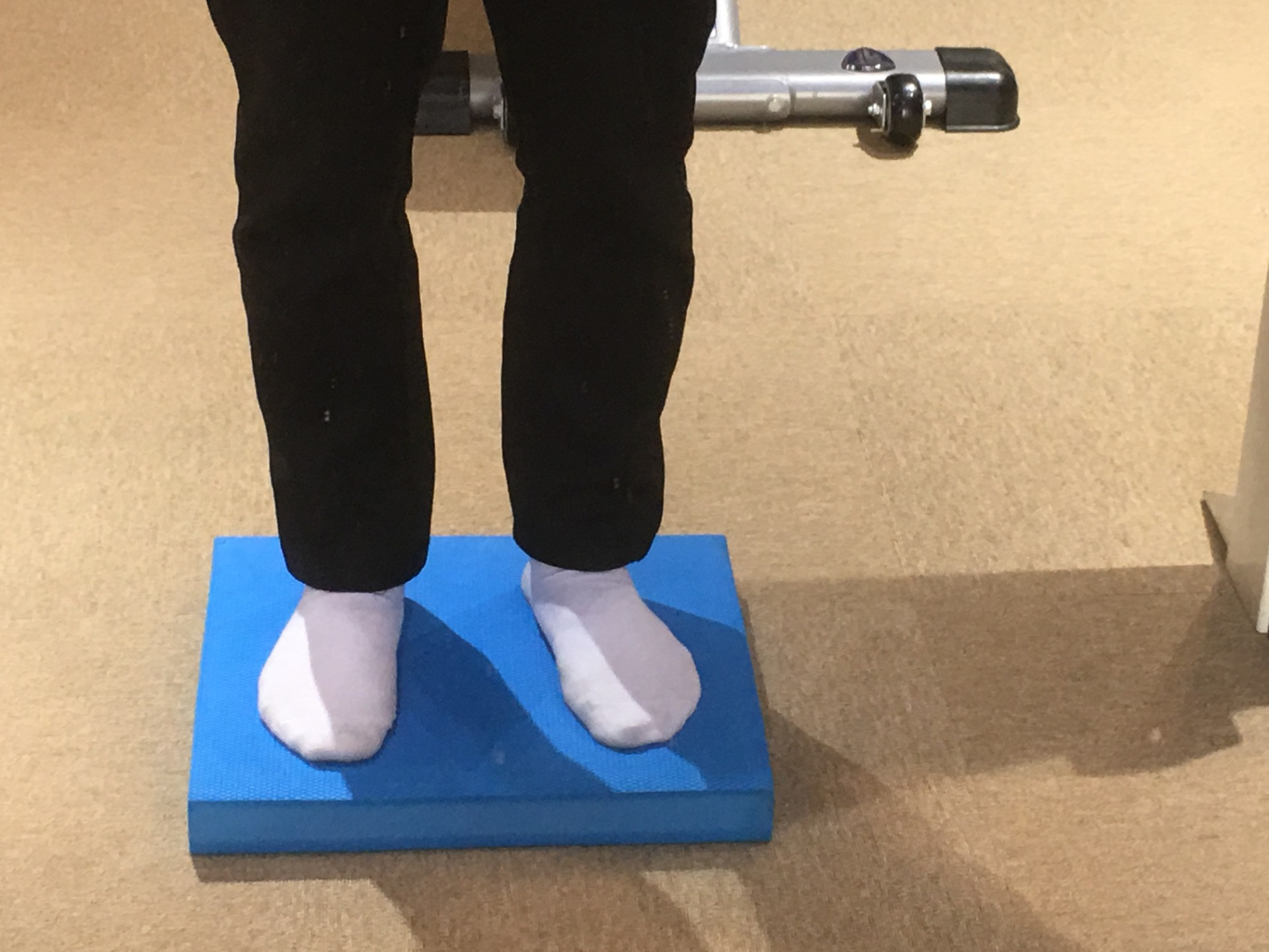 基本的に、日常生活の中で足元、体幹が安定しないといけない環境を作ってあげると良いと思います。とはいうものの、片足スクワットなど片足バランスエクササイズは非常にハードルが高くなります。少し道具を使って行うと効率がよくなります。