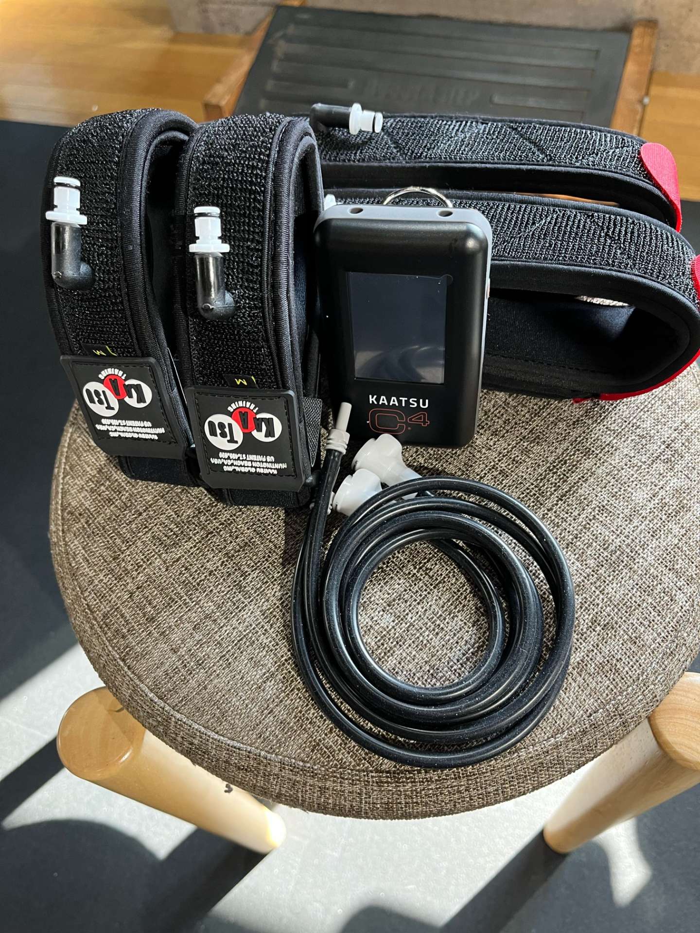 ➀加圧(30秒)除圧(5秒)を1サイクルで8サイクルを1セットでトレーニングします。一度5秒の除圧が入りますので、急激な痛みや辛さを緩和しながらトレーニングを継続出来ます。